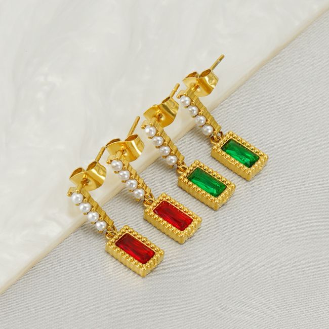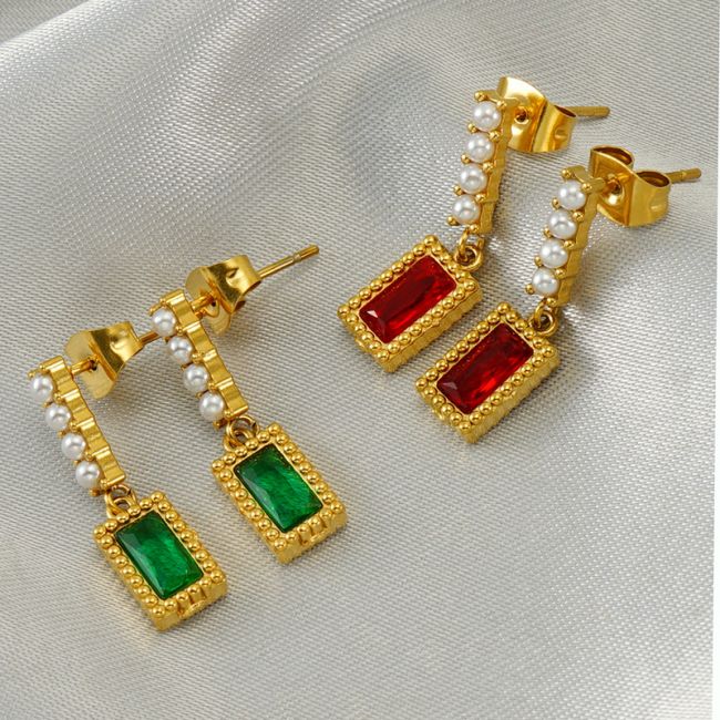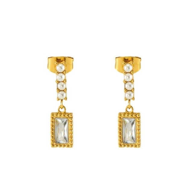 Square Pearl and Zircon Stainless Steel Earrings for Women - Trendy European and American Style