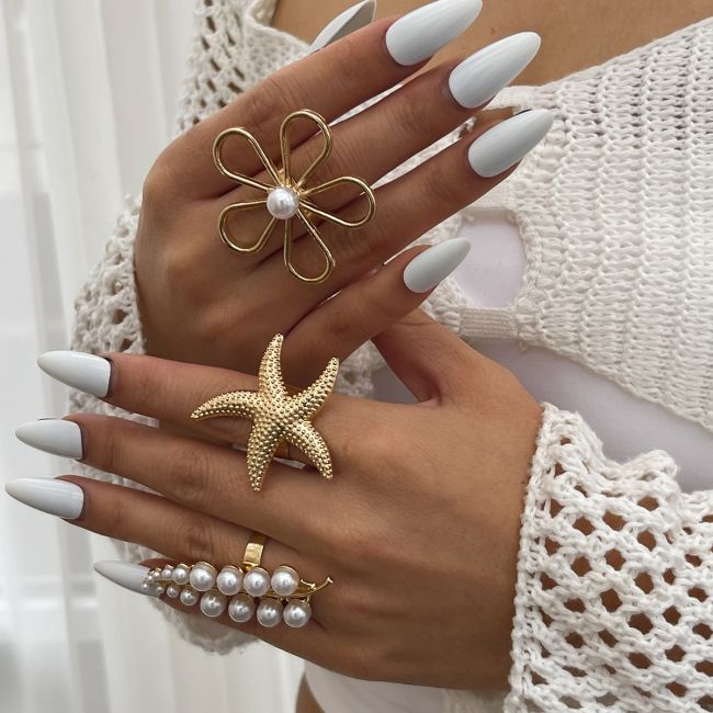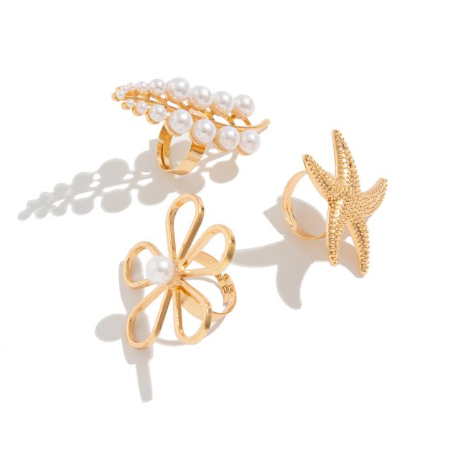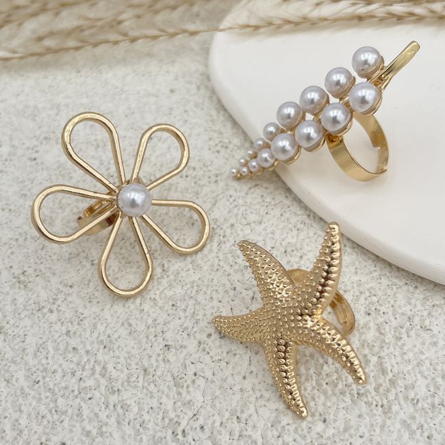 - Shape/Design: Unique irregular branch-shaped rings with pearl embellishments