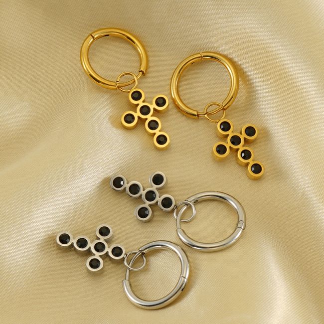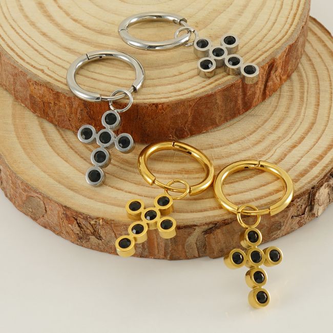 Stainless Steel Cross Drop Earrings for Women - 18K Gold Plated Retro Hoop Earrings