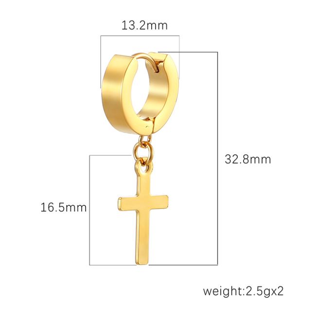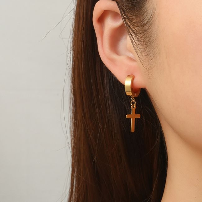 Stainless Steel Cross Drop Earrings - Punk Style Unisex Geometric Design in Silver, Gold & Black
