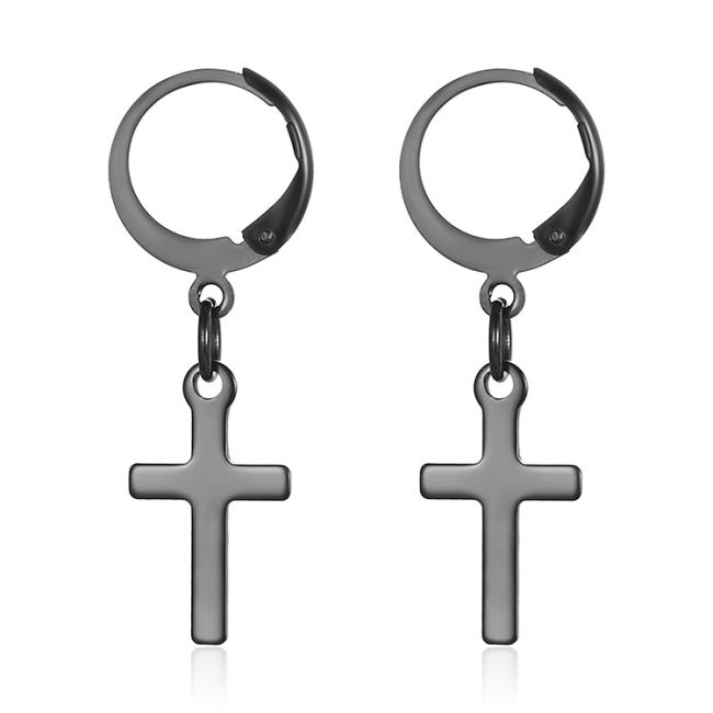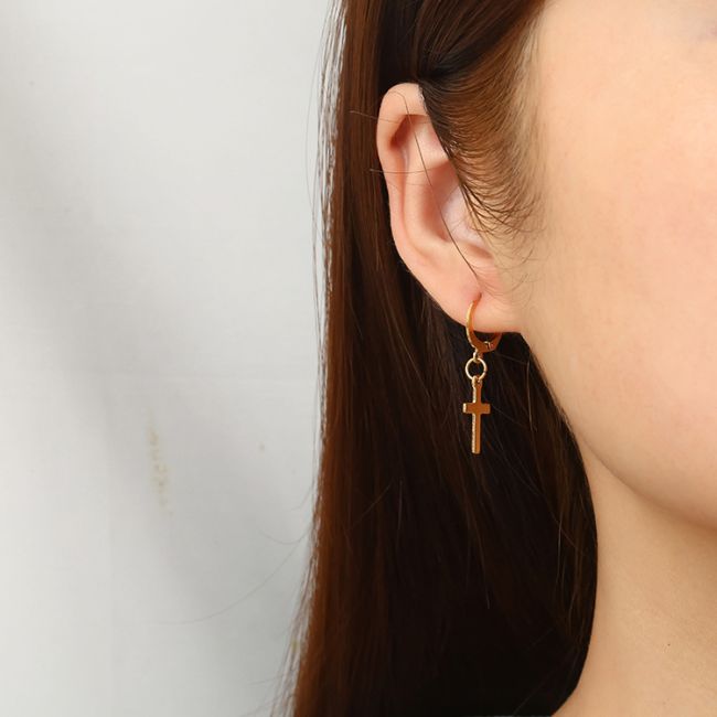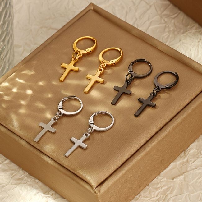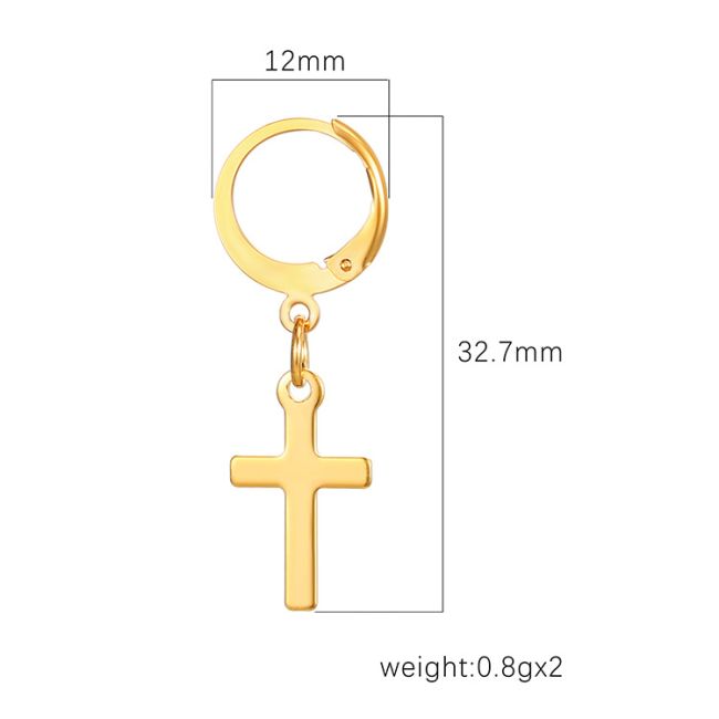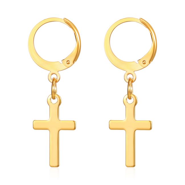 Stainless Steel Cross French Hook Earrings for Women - 18K Gold Plated Minimalist Fashion Jewelry