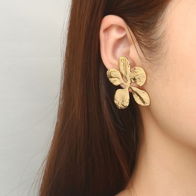 Stainless Steel Five-Leaf Clover Petal Earrings - European Style Fashion Earrings