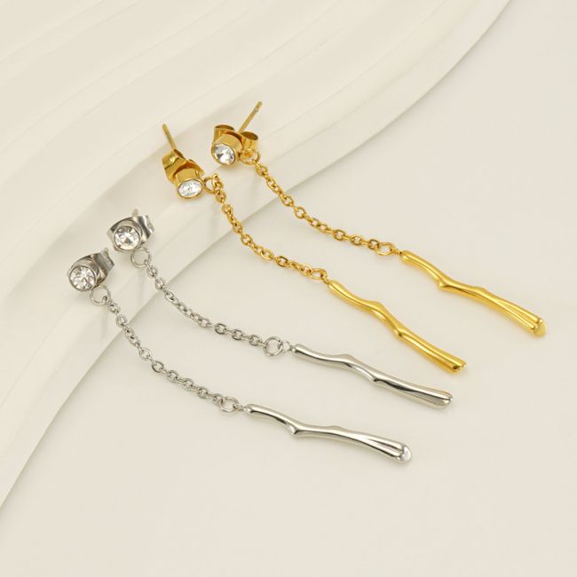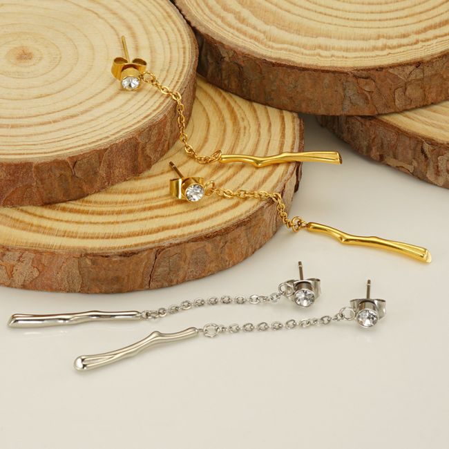 Stainless Steel Fringe Bamboo Hoop Earrings for Women - 18K Gold Plated Elegant Drop Earrings