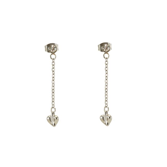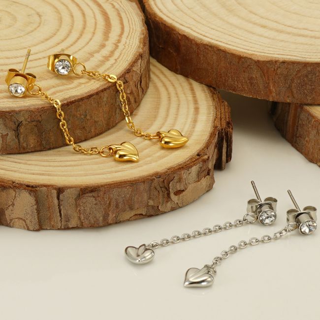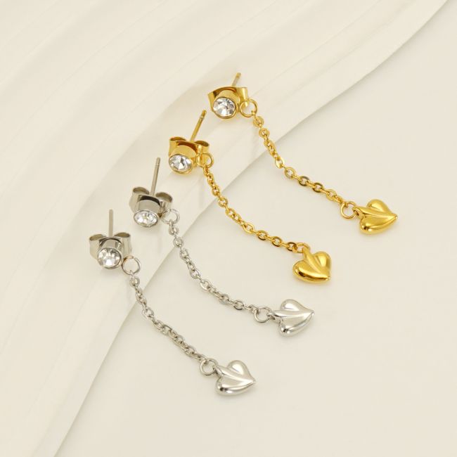 Stainless Steel Fringe Heart Earrings for Women - Elegant 18K Gold-Plated Dangle Earrings with Crystal Accents