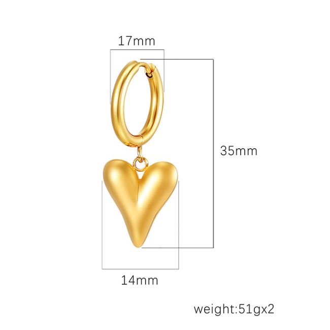 Fashionable Stainless Steel Heart Drop Hoop Earrings for Women - Gold & Silver Plated