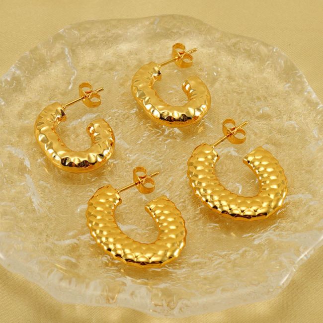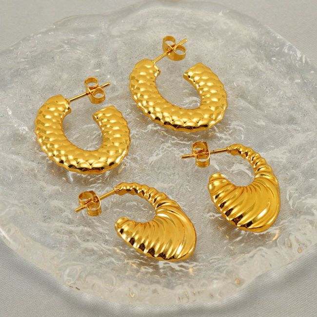 Stainless Steel Geometric Hoop Earrings for Women - Retro U-Shaped Design