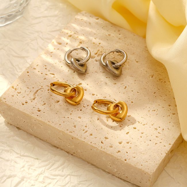 Stainless Steel Hollow Heart Detachable Hoop Earrings for Women - Minimalist Geometric Design