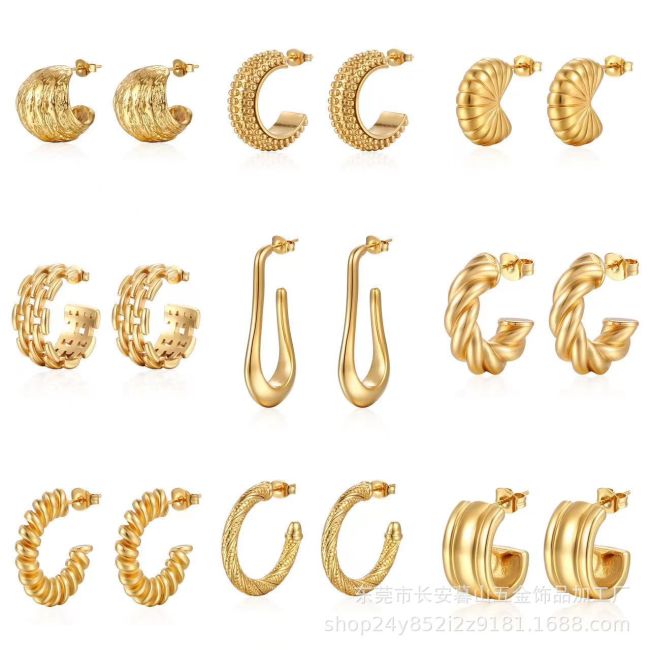 Stainless Steel Hoop Earrings with 18K Gold Plating - Light Luxury Women's Earrings