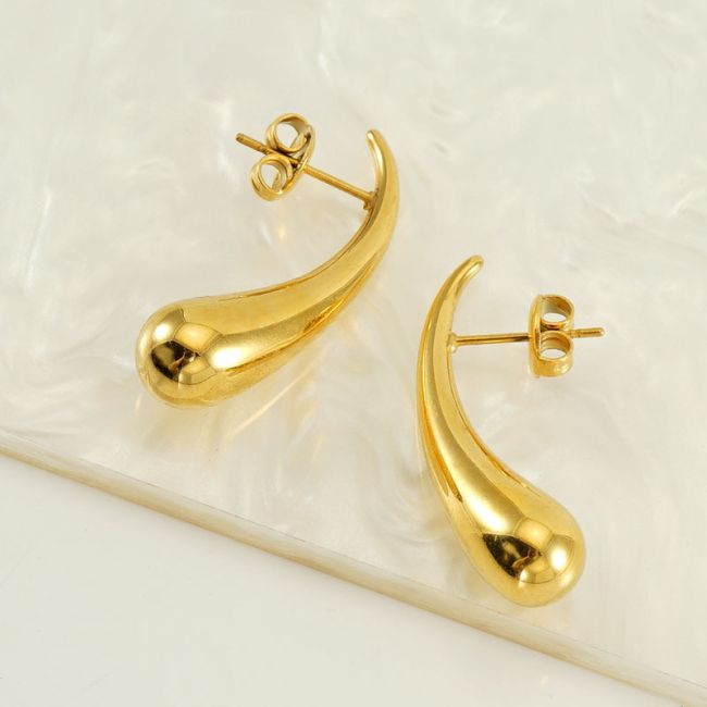 Stainless Steel Minimalist Teardrop Drop Earrings for Women - 18K Gold Plated