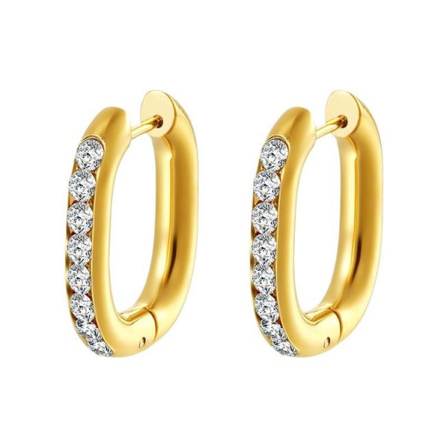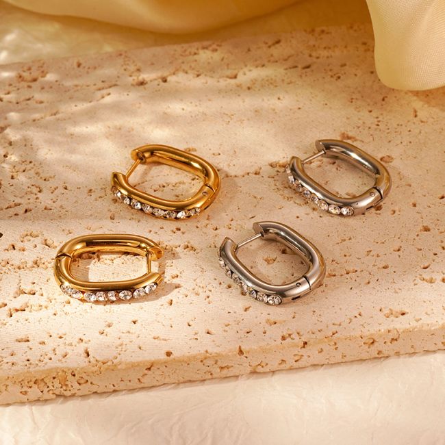 Stainless Steel Oval Zircon Stud Earrings for Women - Trendy Geometric Minimalist Design