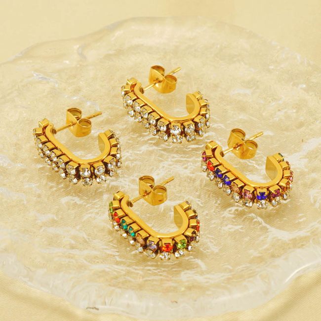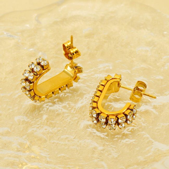 Stainless Steel U-Shaped Earrings with Diamond Accents for Women - Elegant and Versatile