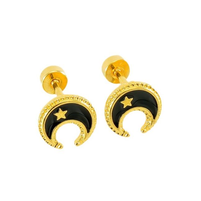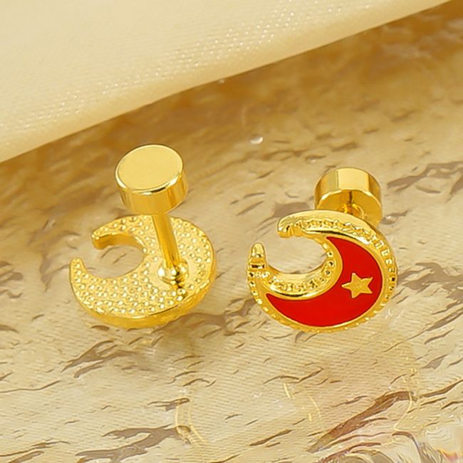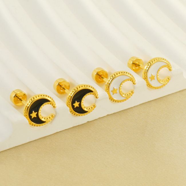 Star and Moon Titanium Steel Earrings - Elegant 18K Gold Plated Fashion Studs for Women