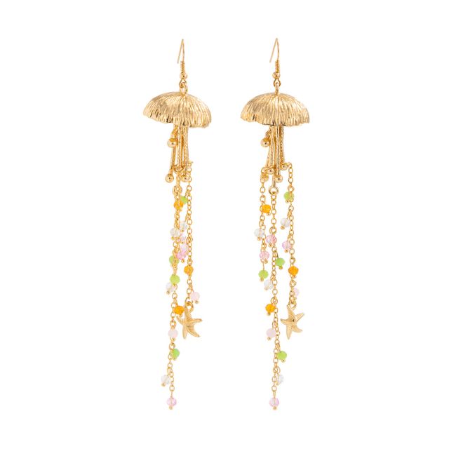 Starfish & Jellyfish Alloy Drop Earrings with Crystal Fringe for Beach Vacation