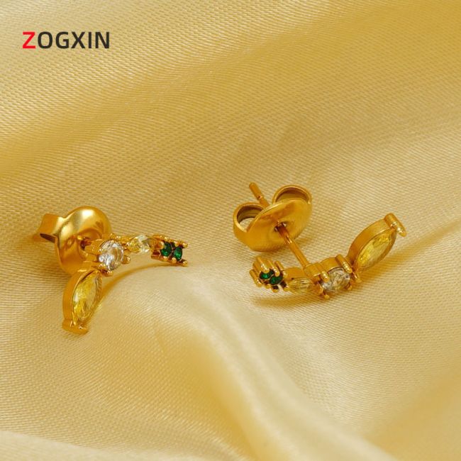 Summer Banana Fruit Titanium Steel Cartilage Earrings for Women - 18K Gold Plated Cute Small Stud Earrings