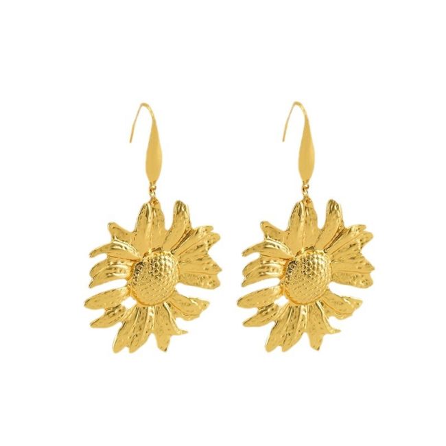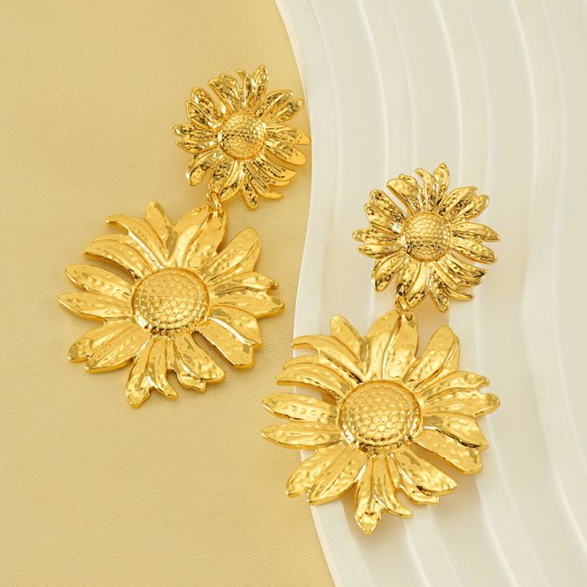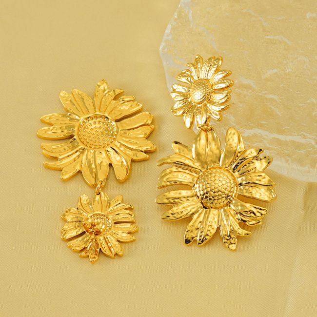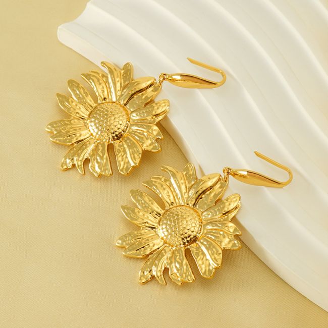 Sunflower Stainless Steel Earrings - Retro Floral Design for Women