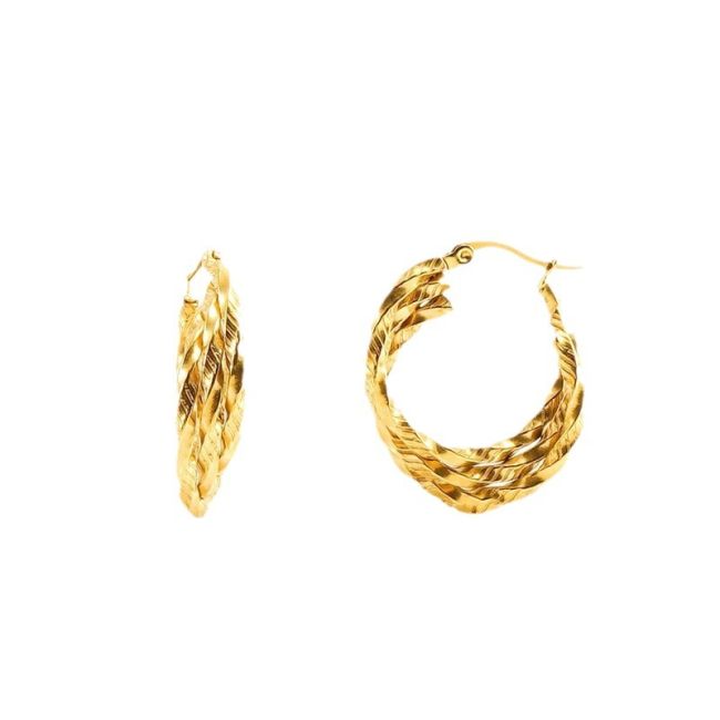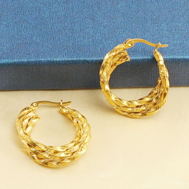 - Design: Three-layer twisted geometric hoop style