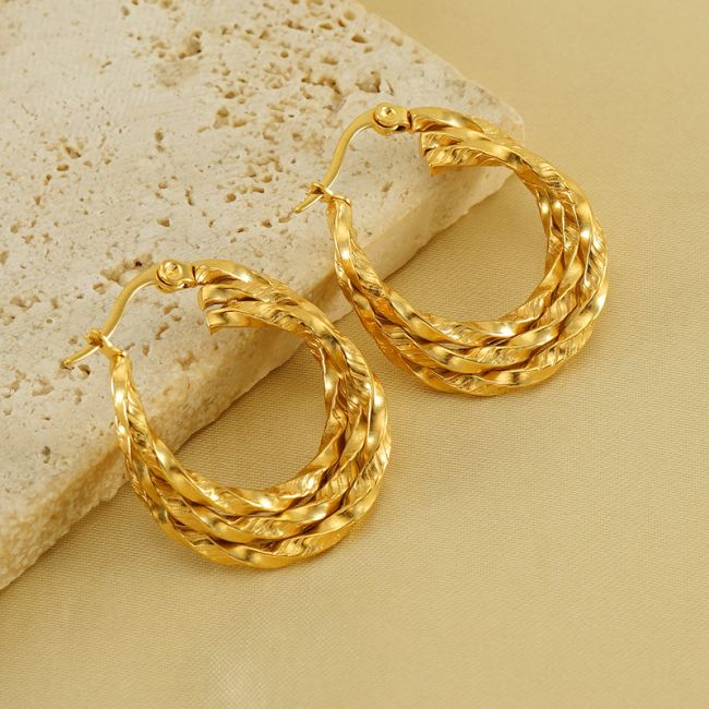 Three-Layer Twisted Hoop Earrings for Women - 18K Gold Plated Geometric French Style