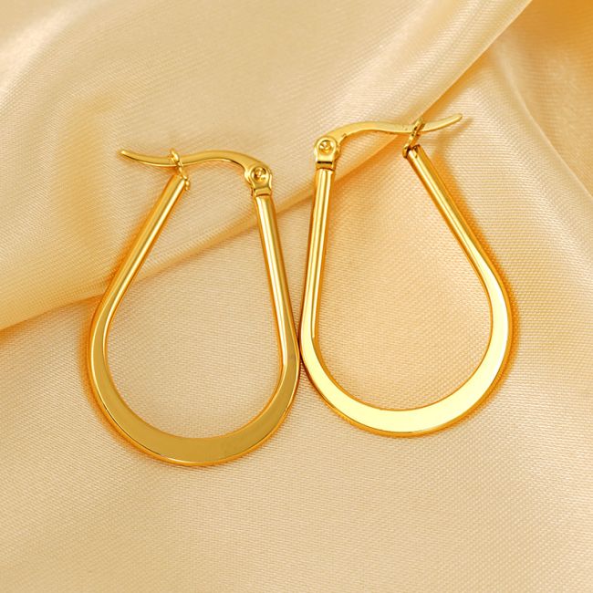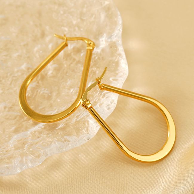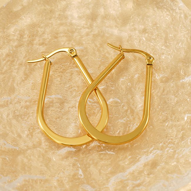 U-Shaped Stainless Steel Hoop Earrings in 18K Gold Plating for Women