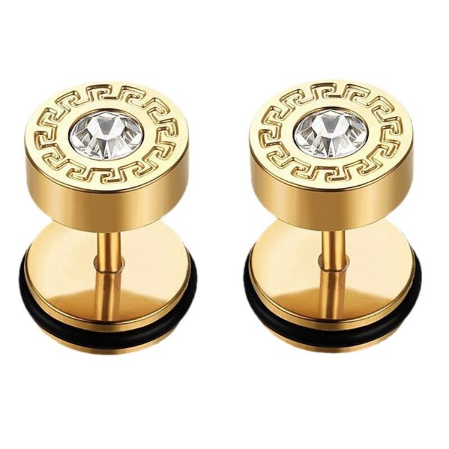 - Shape/Design: Circular barbell studs featuring intricate Great Wall pattern
