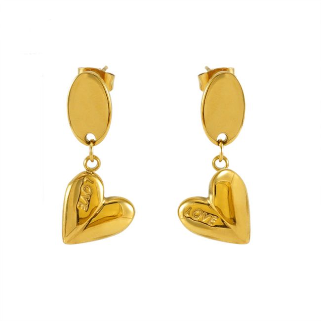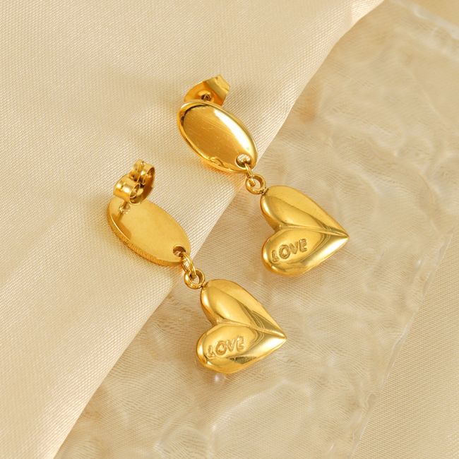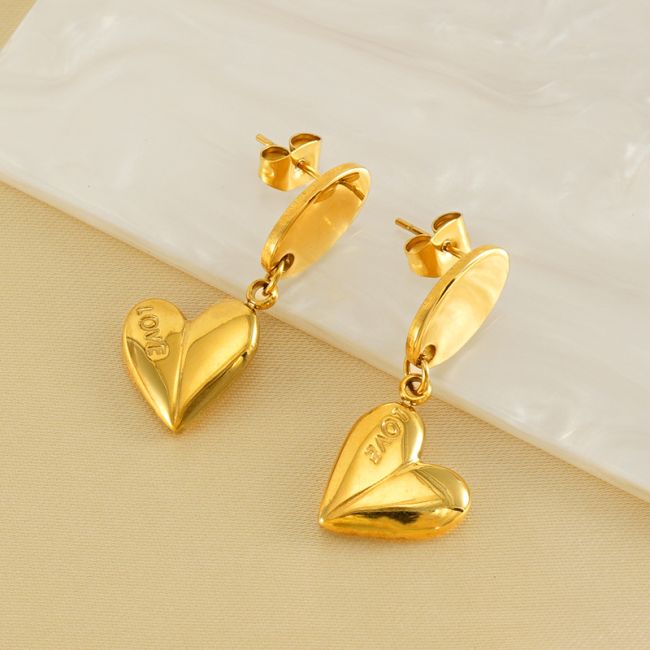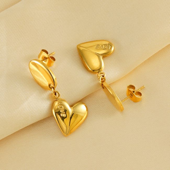 Vintage Gold-Plated Stainless Steel Heart Earrings for Women