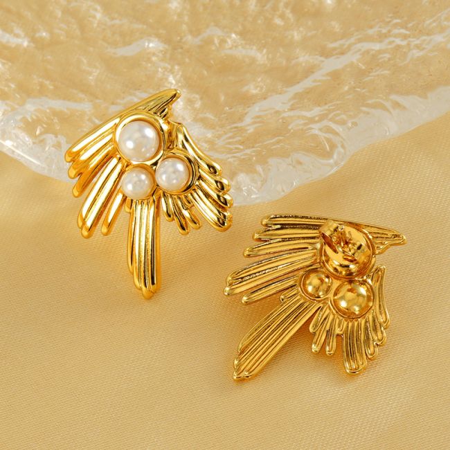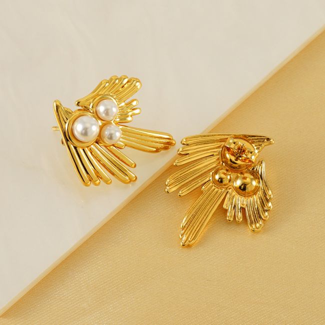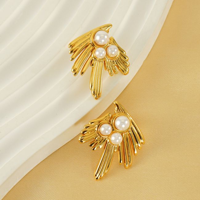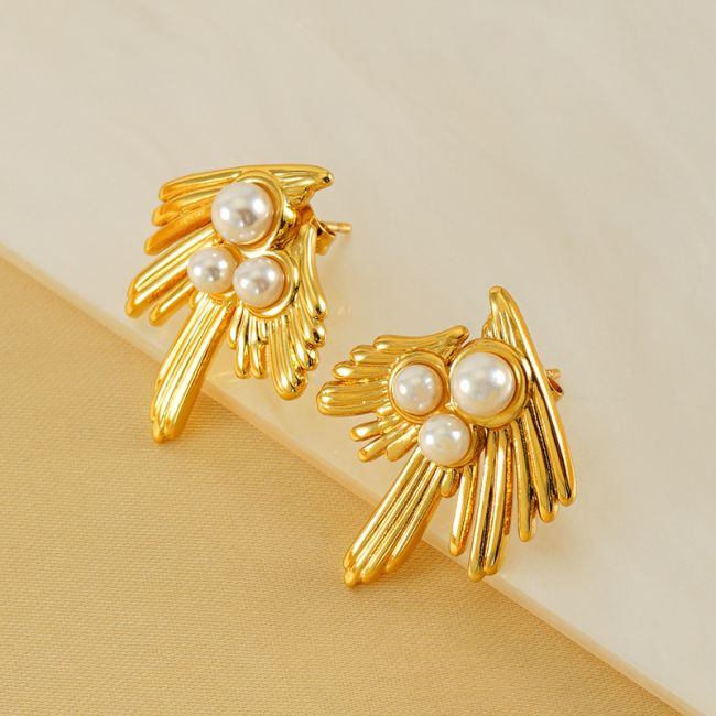 Vintage Swallow Pearl 18K Gold Plated Stainless Steel Earrings for Women