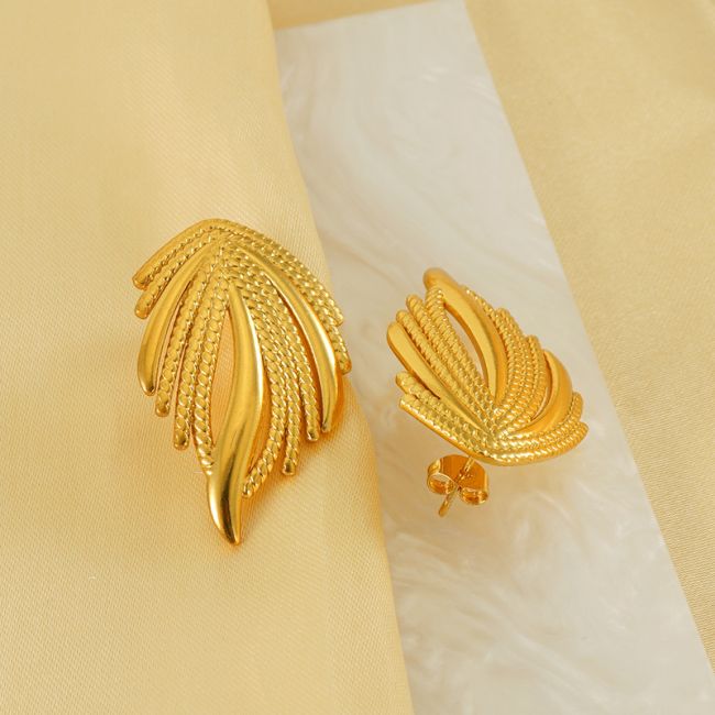 Wing-Shaped Stainless Steel Earrings in Gold Tone - Fashionable and Unique Design